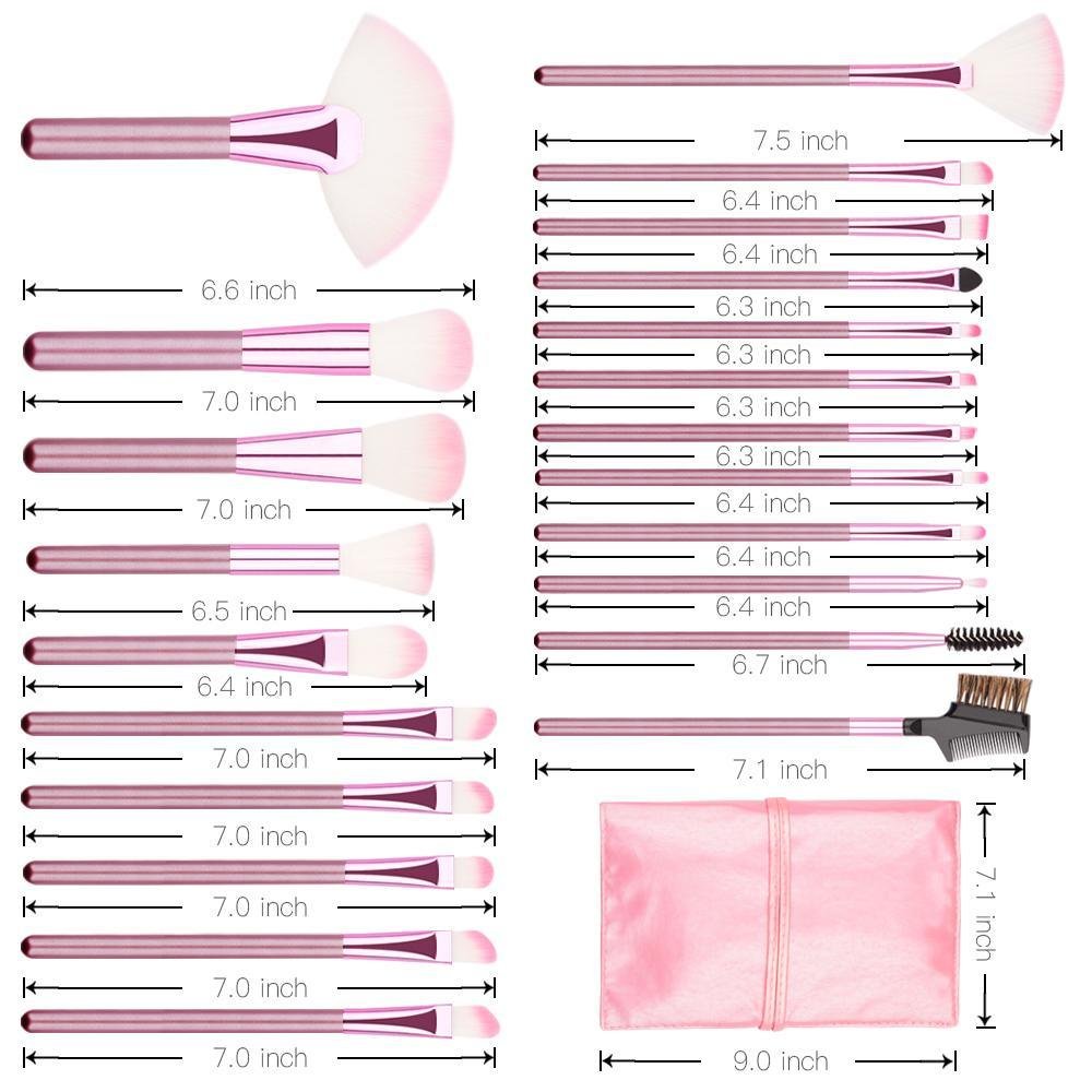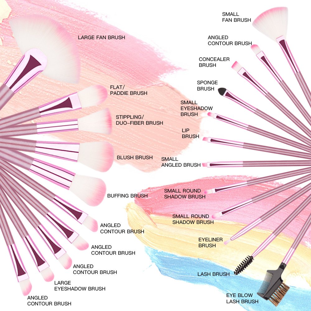 Brushes Included: Powder blush brush,Angle Contour Brush, Foundation Brush,Eyeshadow brush,Flat Eyebrow brush,Lip brush,Eyeliner Brush etc.
