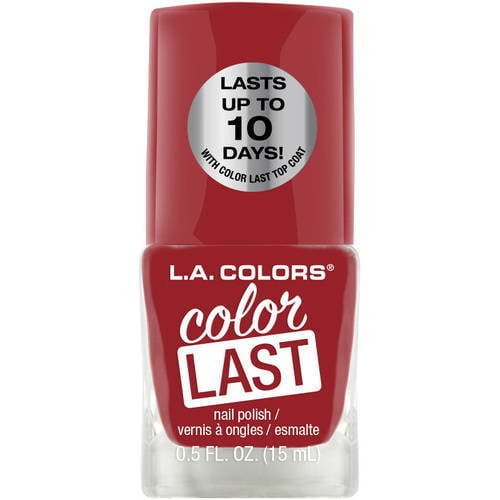 Liven up your look with L.A. Colors Color Last Nail Polish. It's formulated to create salon-quality coats that won't chip, peel or fade for up to 10 days. L.A. Colors Color Last topcoat is a two-step nail polish and the next development in innovative beauty. It delivers an easy application with a rounded 440-count bristle brush for intense color that lasts. It's available in a range of bright and vibrant colors.