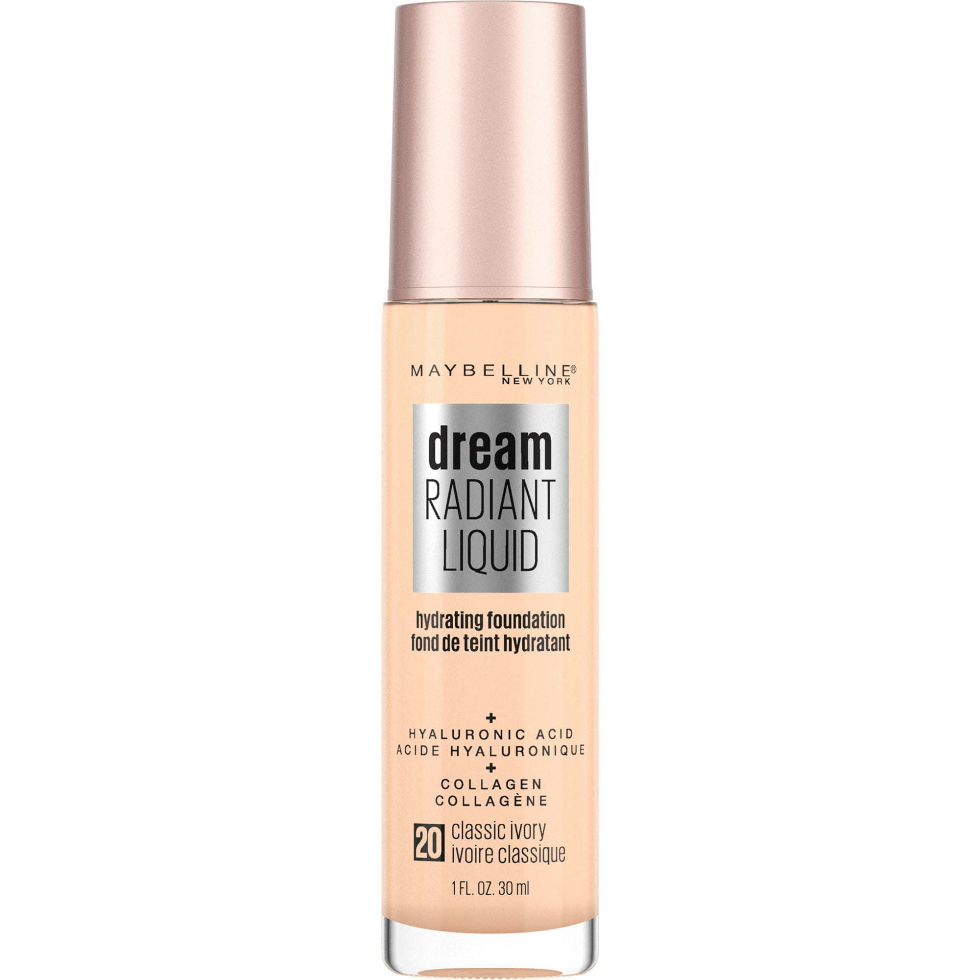 Maybelline Dream Radiant Liquid Foundation Makeup, 20 Classic Ivory, Get ready to face the city with radiance! Experience medium, radiant coverage your skin will never want to take off. This lightweight foundation, formulated with hyaluronic acid and collagen, moisturizes skin and gives a natural look. Delivering up to 12 hours of hydration, this new formula comes in 20 different shades and provides smooth and even-looking skin. Doesn't clog pores. Dermatologist tested.
