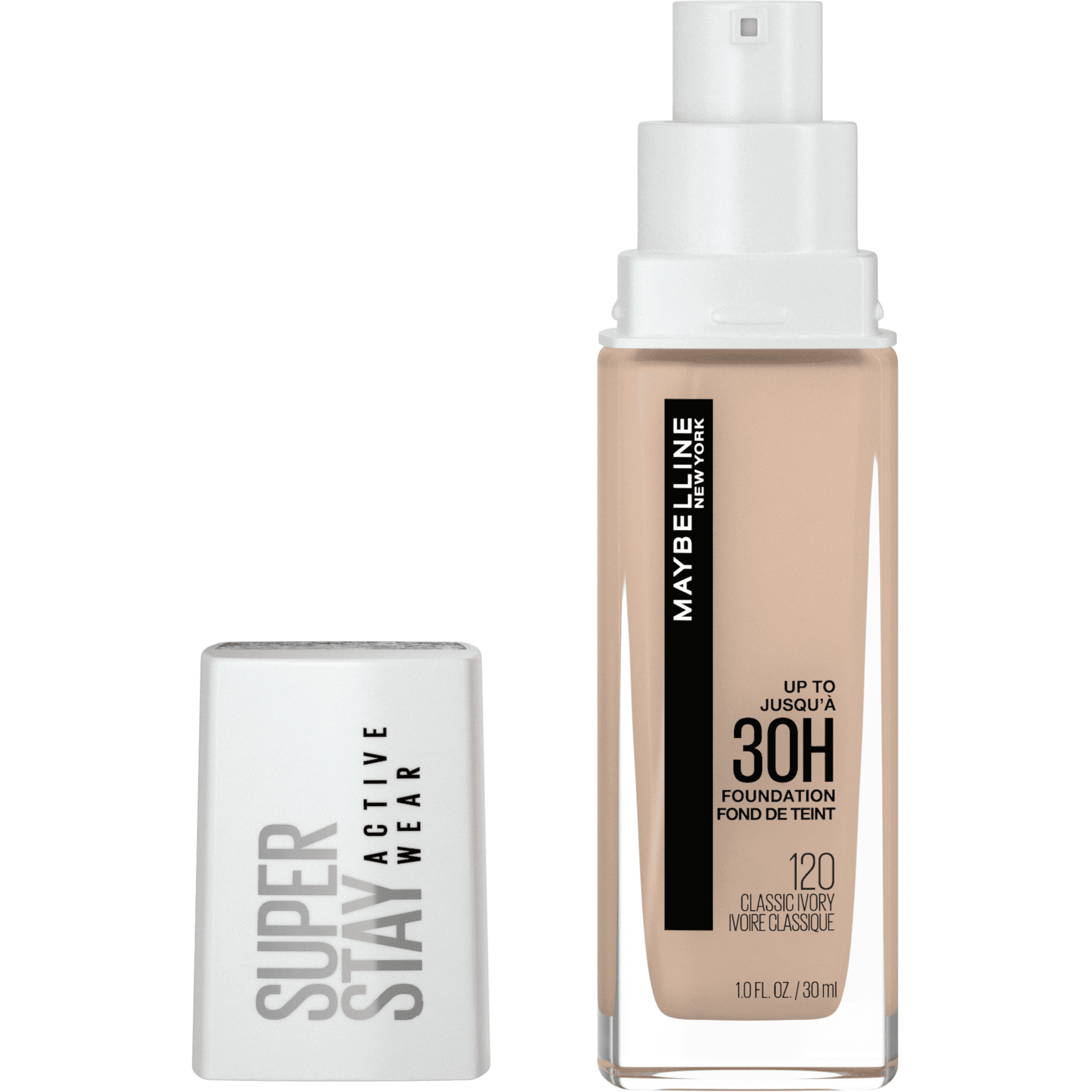 Maybelline Super Stay Liquid Foundation Makeup, Full Coverage, 120 Classic Ivory, Combat the clock for up to 30-hour performance with this active long-lasting foundation that feels light as air. Its transfer-resistant, water-resistant, and sweat-resistant. When it comes to a high-pigment foundation with a weightless, natural finish, this comfortable matte foundation goes above and beyond to transform the look of your skin. It features an oil-free formula that doesn't clog pores and is dermatologist tested. For all skin types.Packaging may vary, what you receive may not be what is reflected on site.