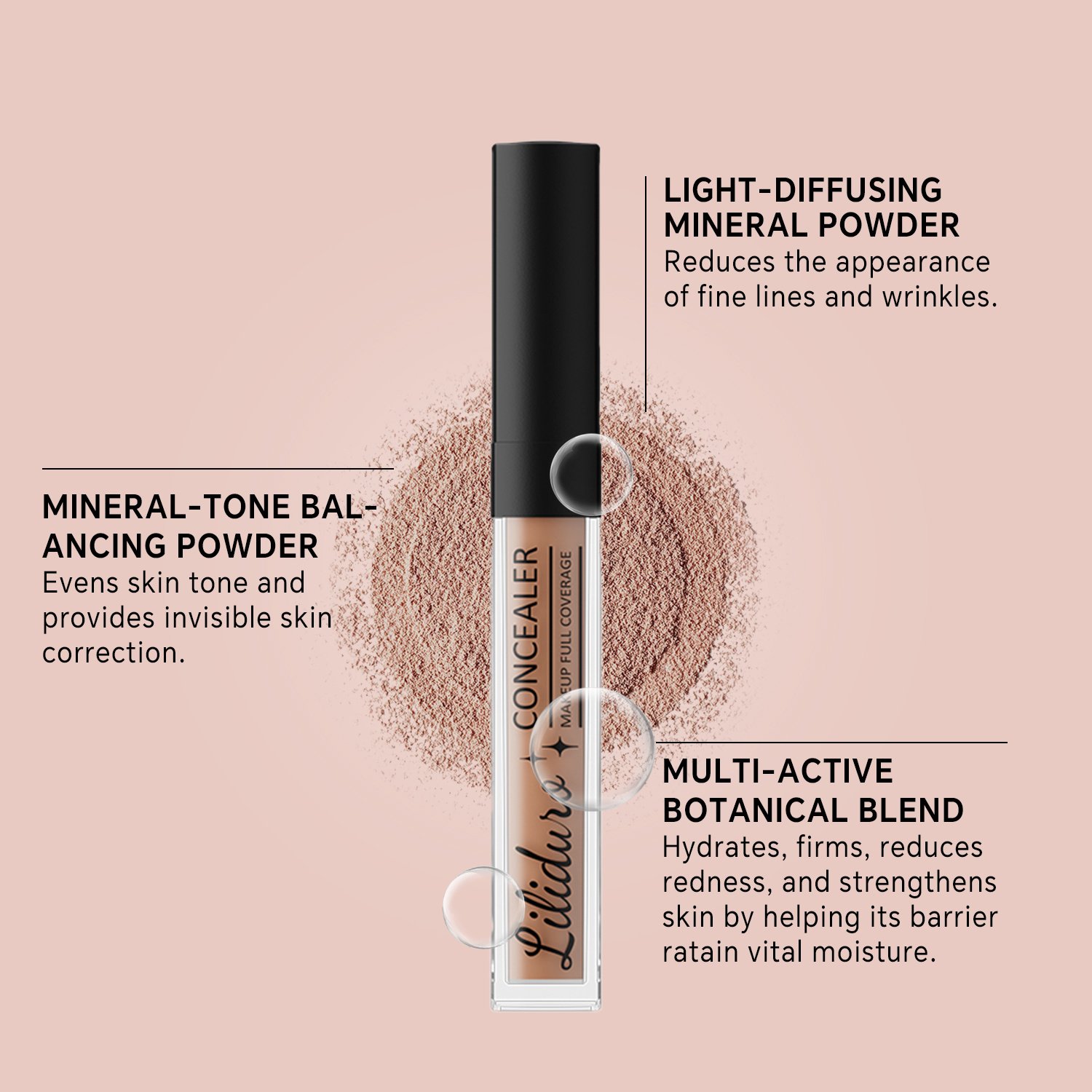 * Mineral-tone balancing powder: evens skin tone and provides invisible skin correction.